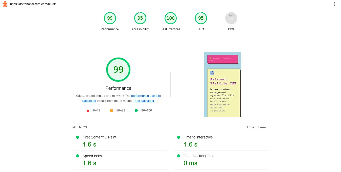Free download source code website template astronot bludit about information and peform tester.
